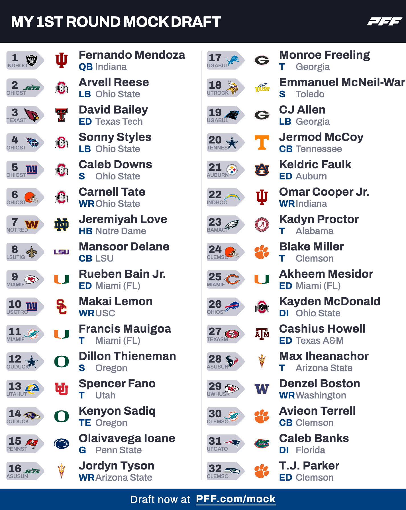 13:55 - Raiders QB Choice: Fernando Mendoza at No. 1