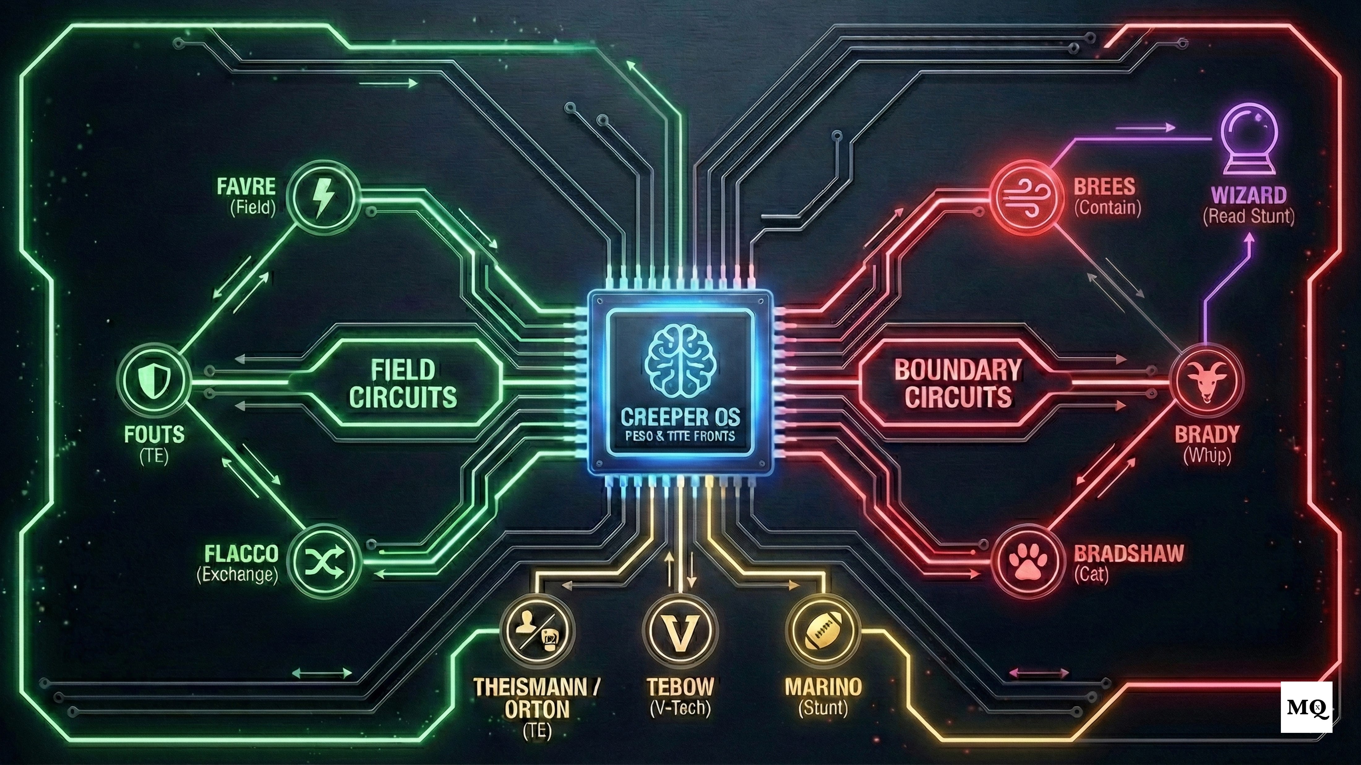 Master the intricacies of Dave Aranda’s Creeper Package with this comprehensive manual on replacement (Creepers) and Simulated Pressures. Featuring detailed breakdowns of field and boundary concepts like Brady, Brees, and field concepts like Favre, this guide provides the alignment, stunt, and coverage rules needed to execute Aranda’s elite schemes from Peso and Tite fronts.
