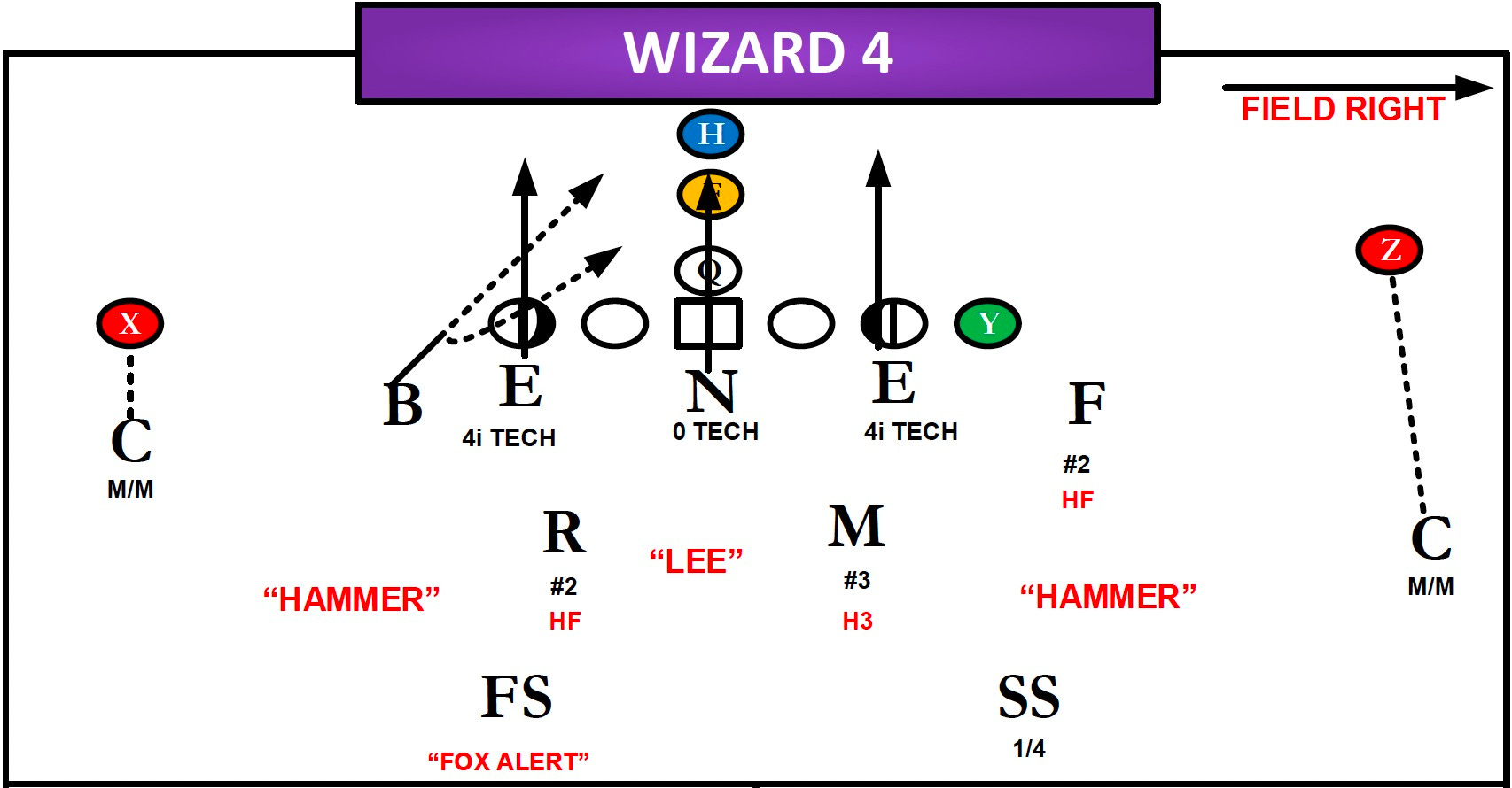The Core Concept A 4-Under / 3-Deep Creeper from the Field. It overloads the field side by blitzing the Nickel and rushing the Field DE/OLB, while dropping the Boundary OLB to simulate a traditional four-man rush from a non-traditional angle.