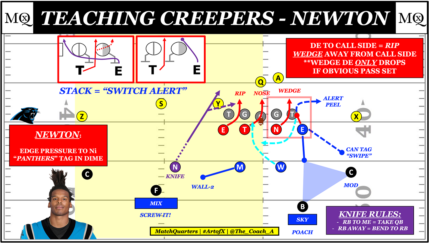 “Panther” tag if using a Nickel that travels to the passing strength, or a “Blitz-the-Formation” (BTF) to get the edge pressure to the passing strength, even if the formation is into the boundary. Can be paired with Brees.