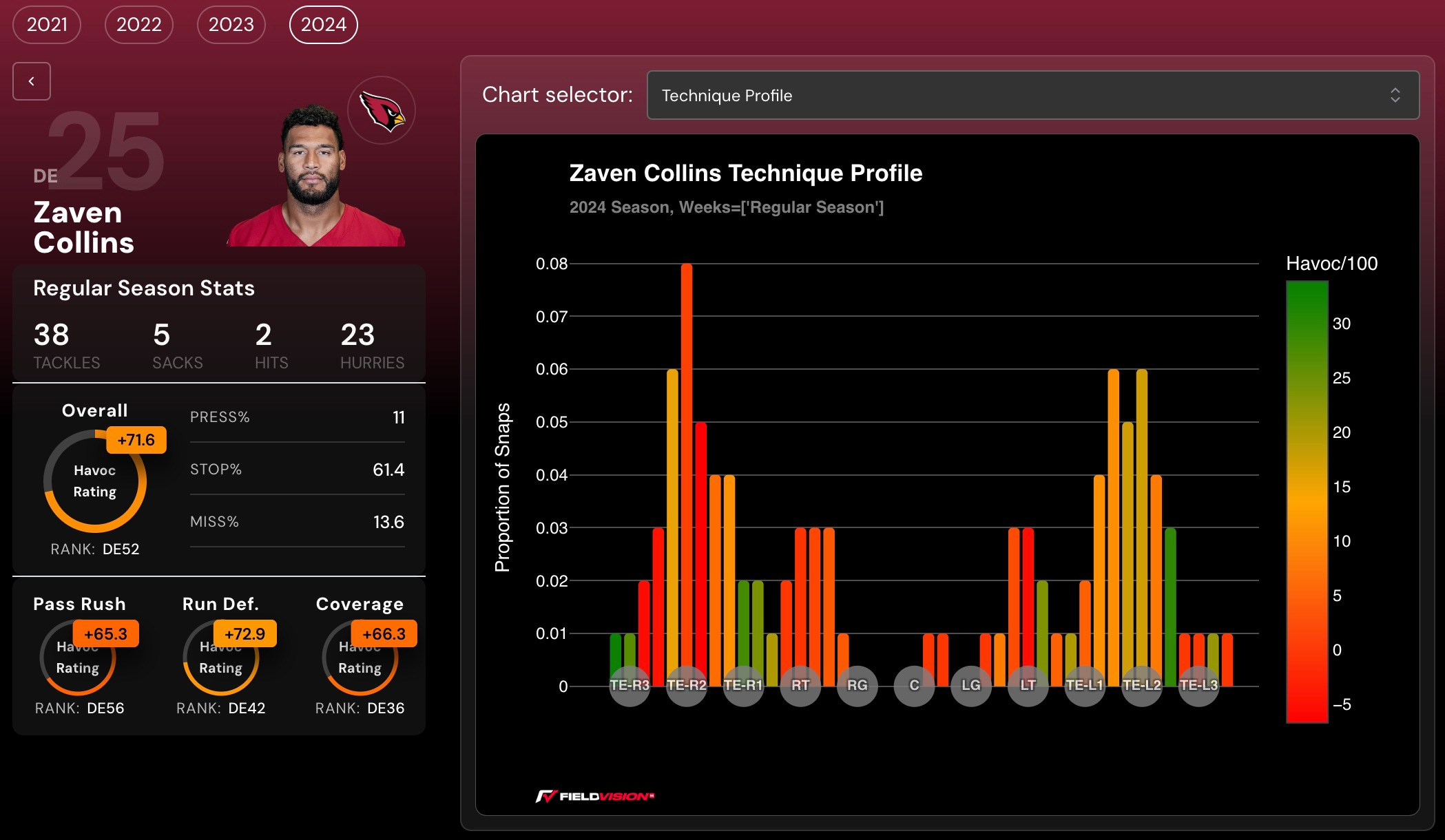 Zay Collins, another ‘joker’ defender, had better success. Once Collins was moved to Edge full-time in Gannon’s defense, he stabilized his play. Collins is one of the best coverage Edges in the NFL, and in Gannon’s unique defense, he is a perfect fit. Ironically, the hybrid nature of Gannon’s defense has led to their success.