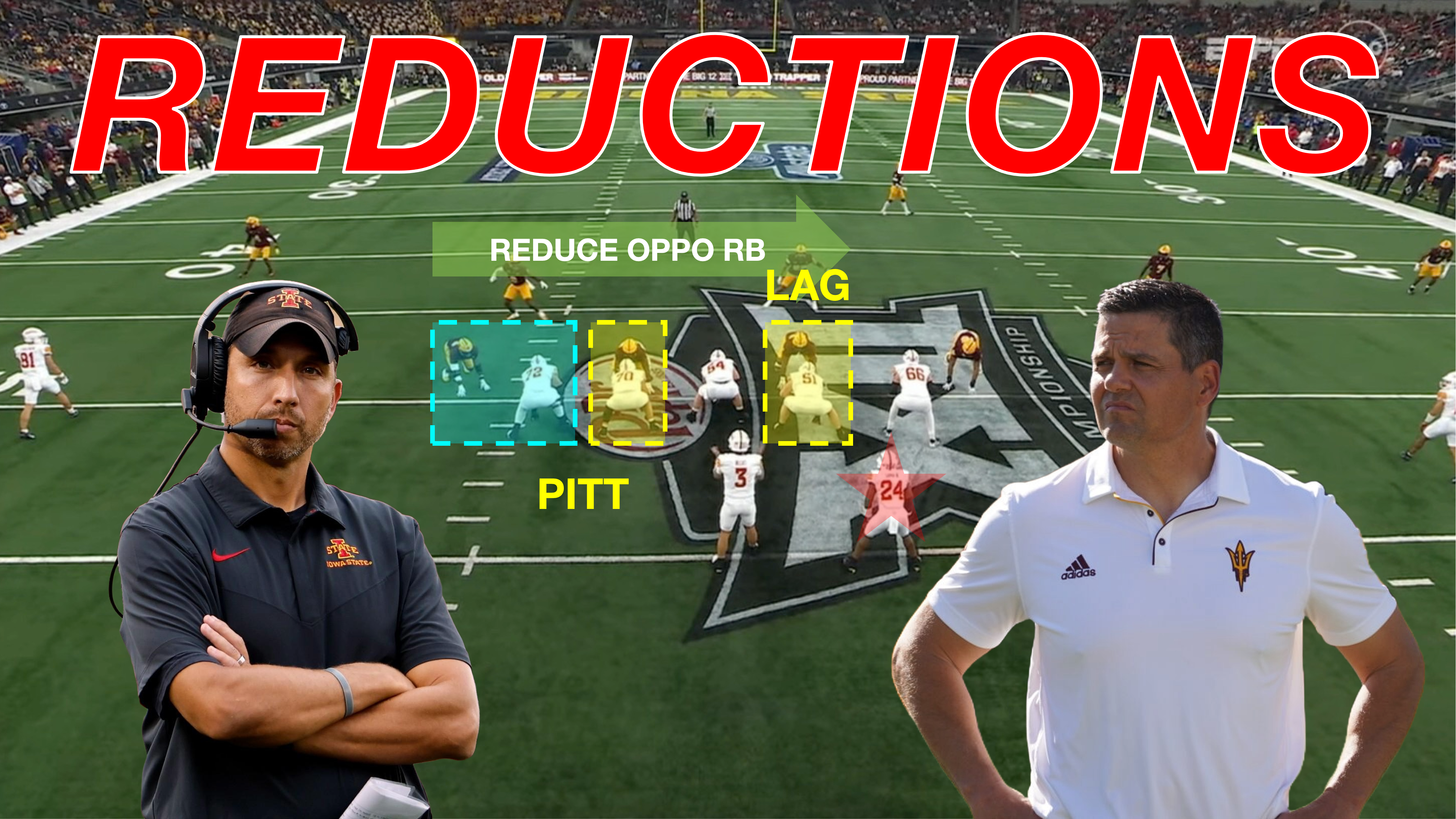 Coaching Point: Typically, you want to run reductions against zone-centric offenses. The clip of Arizona State against a 4-open Counter GT isn’t optimal, but it illustrates how it can funnel the RB into a phone booth.