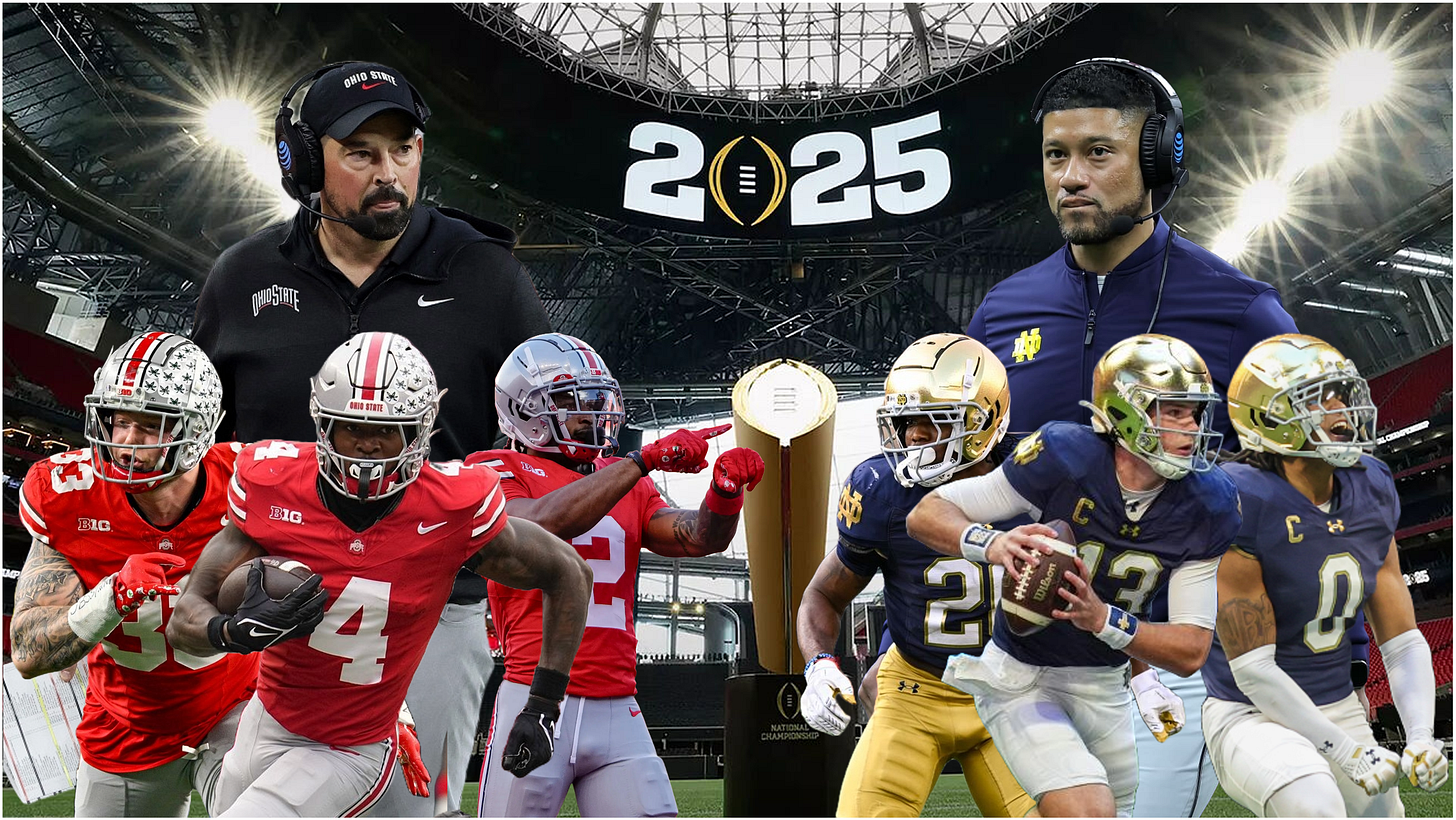 College Football National Championship Preview: Ohio State vs. Notre Dame.