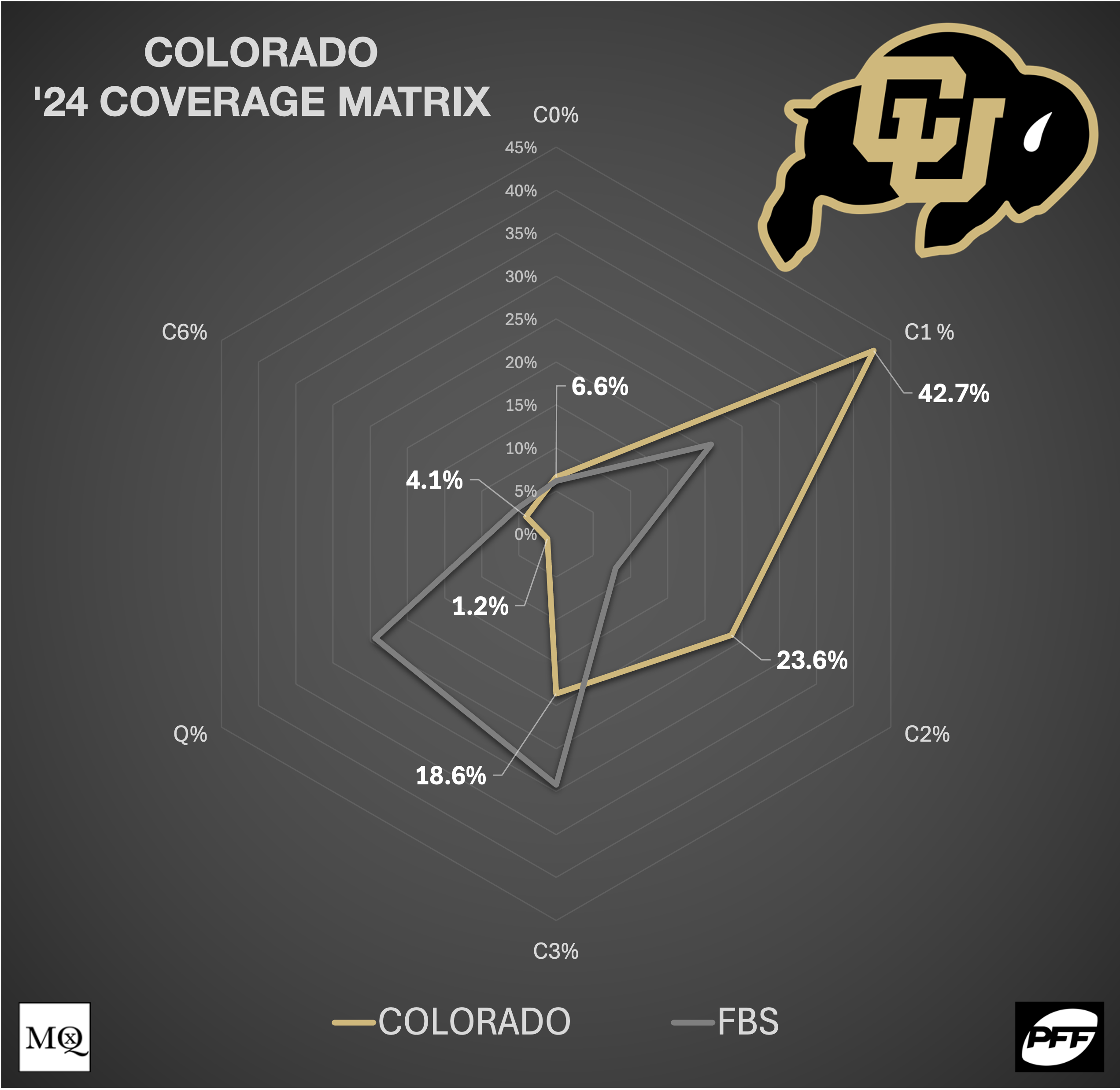 Sanders wants to build a ‘mini’ NFL culture in Boulder. In doing so, he brought in established NFL players and coaches to help lead his team. Livingston brought the Lou Anarumo style to the Rockies. Colorado based from a 4-2-5 that could walk a linebacker down to create Bear Fronts (Penny/5-1). The main front was a traditional Over alignment (3 technique to the TE) with a shade or tilted Nose.