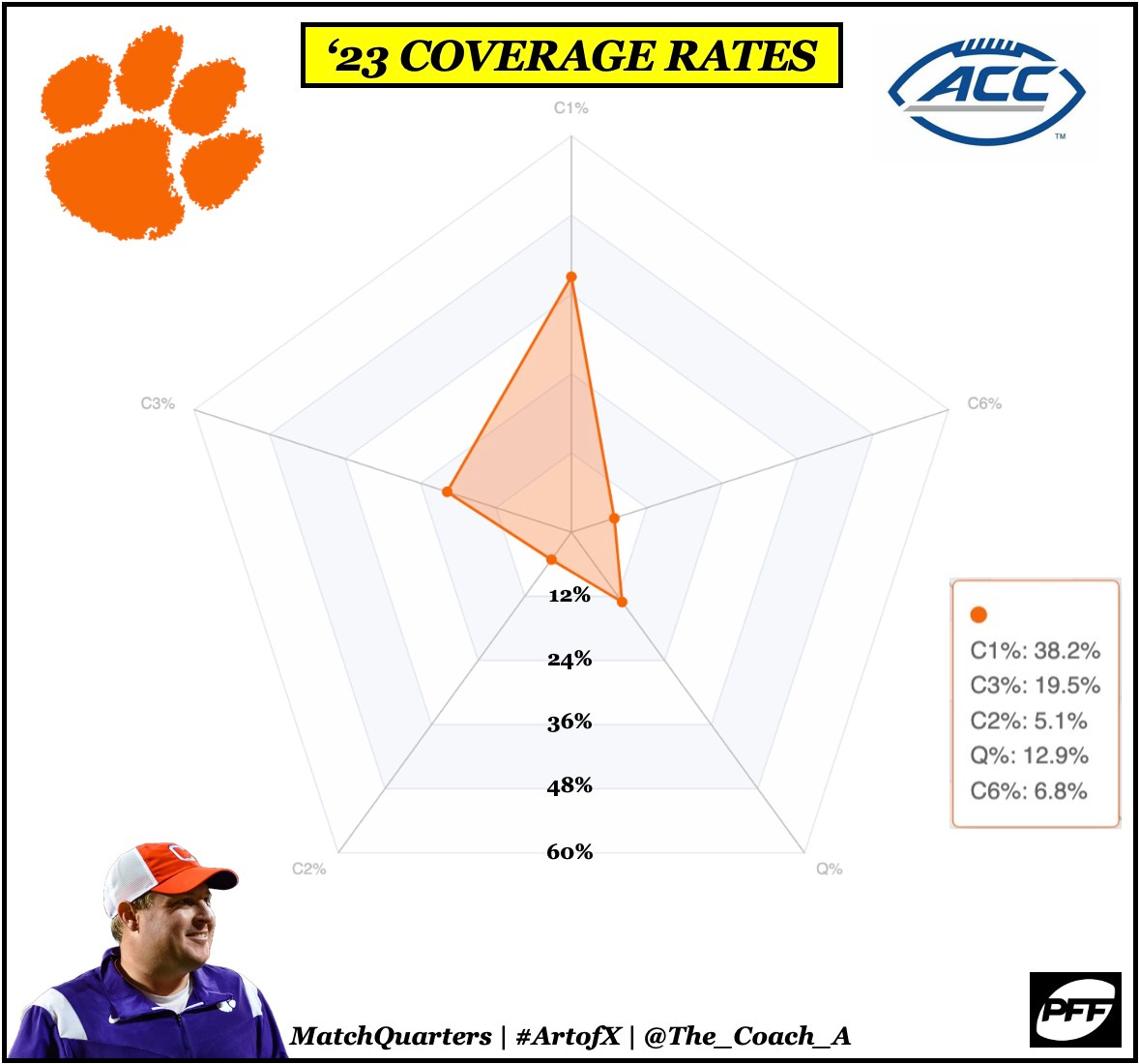 In ‘23, the unit was even better, finishing 4th in DFEI. More impressively, the Tigers finished both years with Goodwin at the helm in the top five in Busted Drives, the percentage of opponent drives that gained zero or negative yards (BCFToys). Not bad for someone who hadn’t called a play.