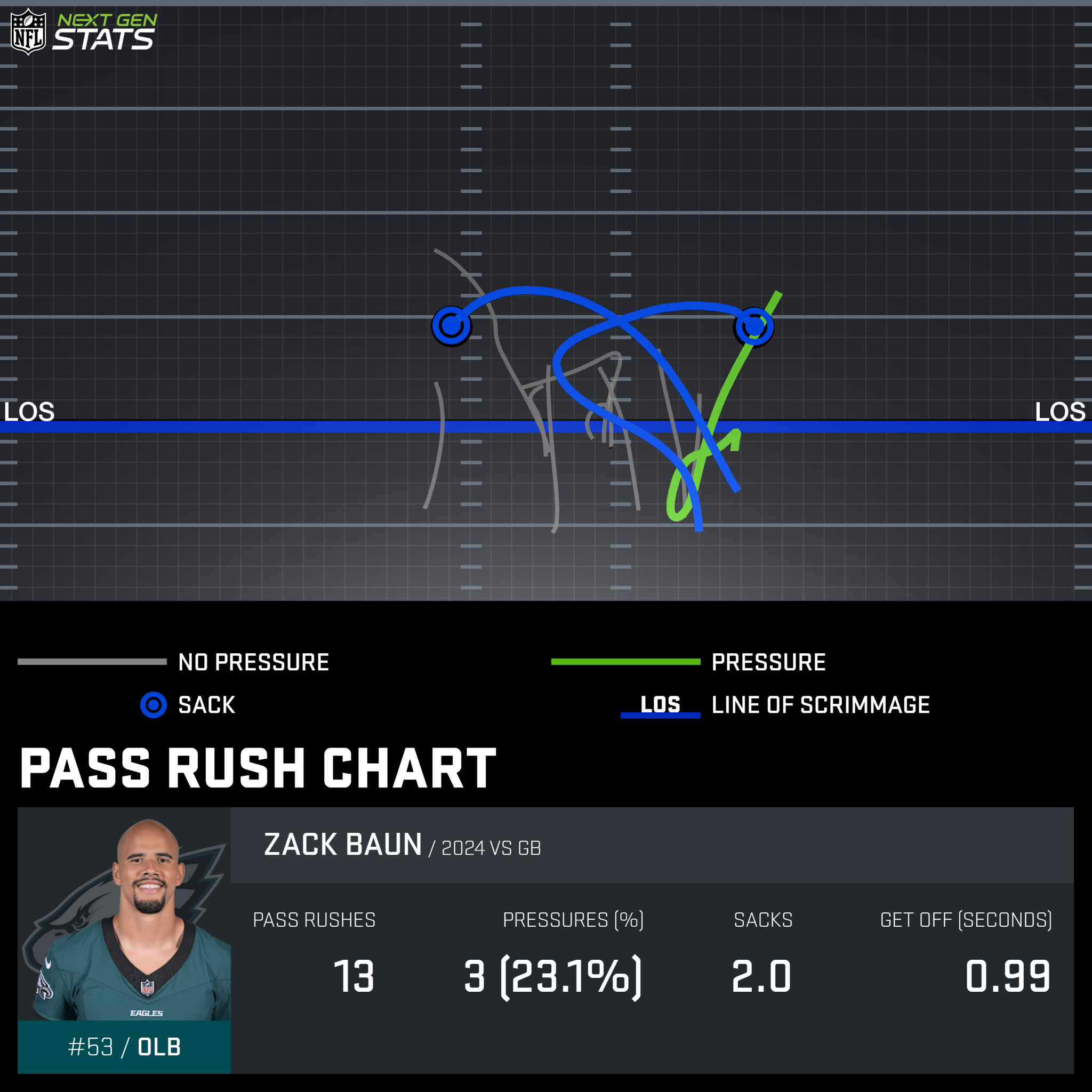 Baun was everywhere in Week 1, racking up two sacks on 13 pass rush attempts.