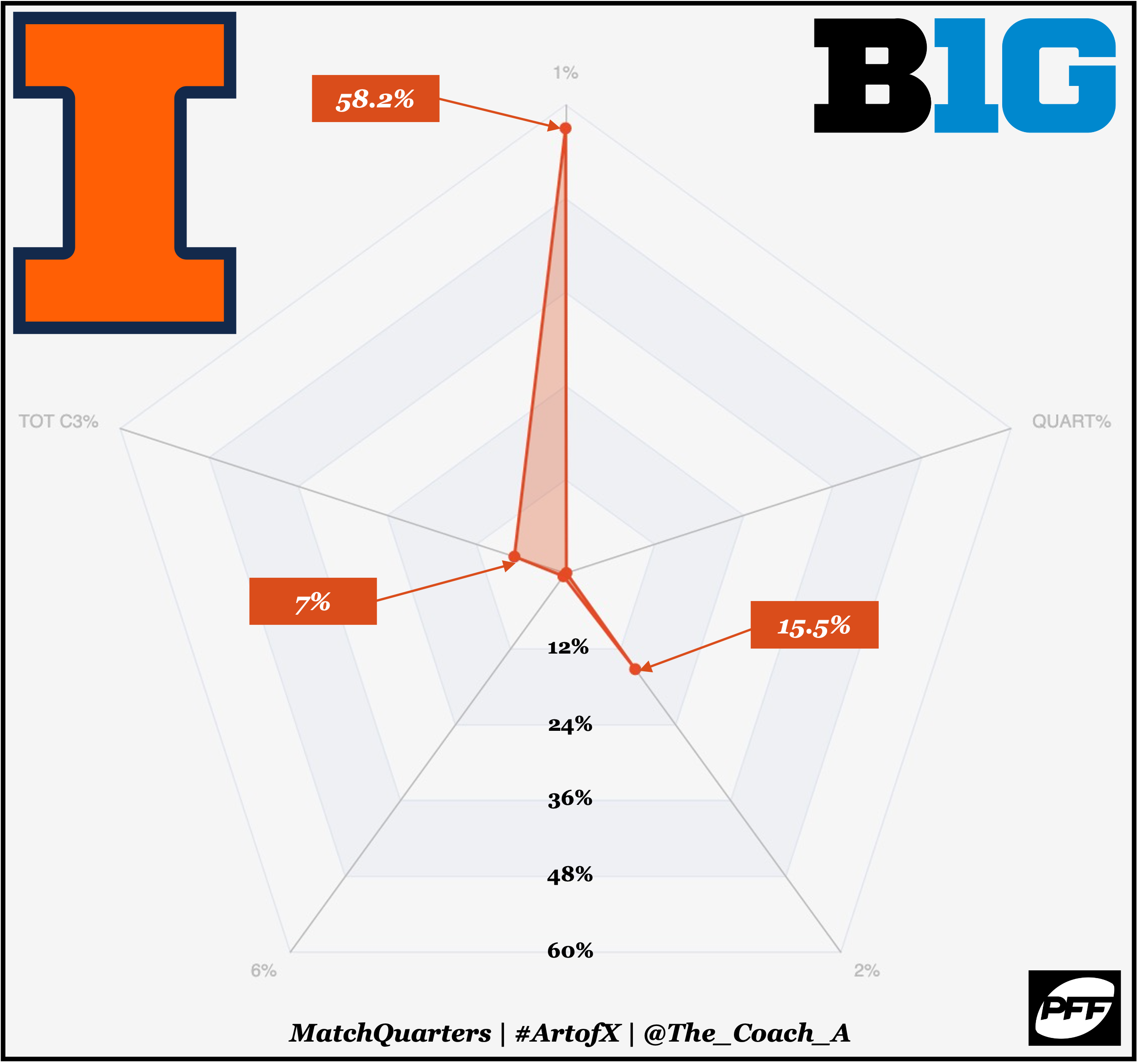 With two workhorse DEs and a secondary built for man-free/C1, the Illini feasted on Big 10 offense. After their mid-season victory over Minnesota, I knew the game with Michigan would be a good matchup, as I pointed out in the tweet below. But, unfortunately, reality struck the Illini as they went 1-2 in their lead-up to the Wolverines.
