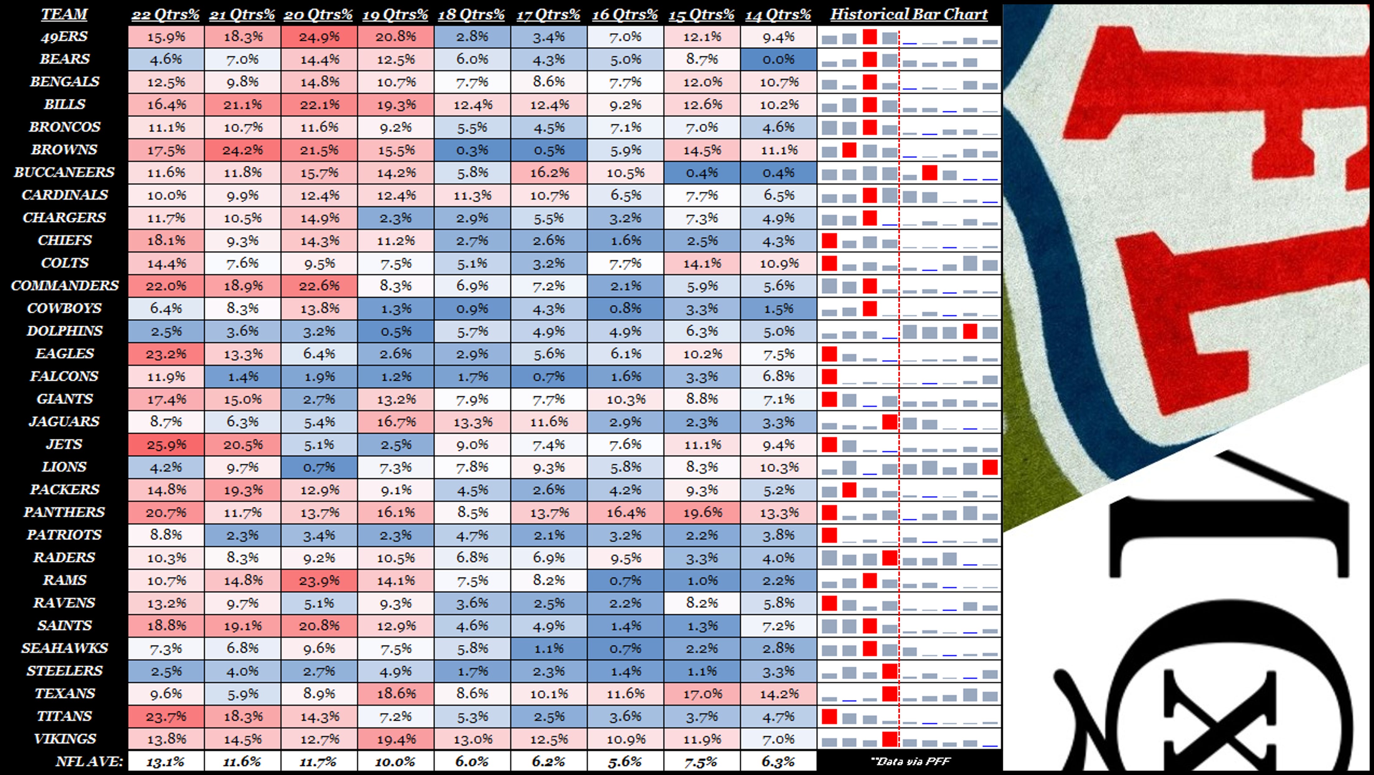 The Jets are the premier Quarters team in the NFL. Last year according to PFF, New York ran the coverage more than anyone else. The rise of Quarters has been something I documented this off-season. Below is a historical view of the coverage’s growth in the NFL since 2014.