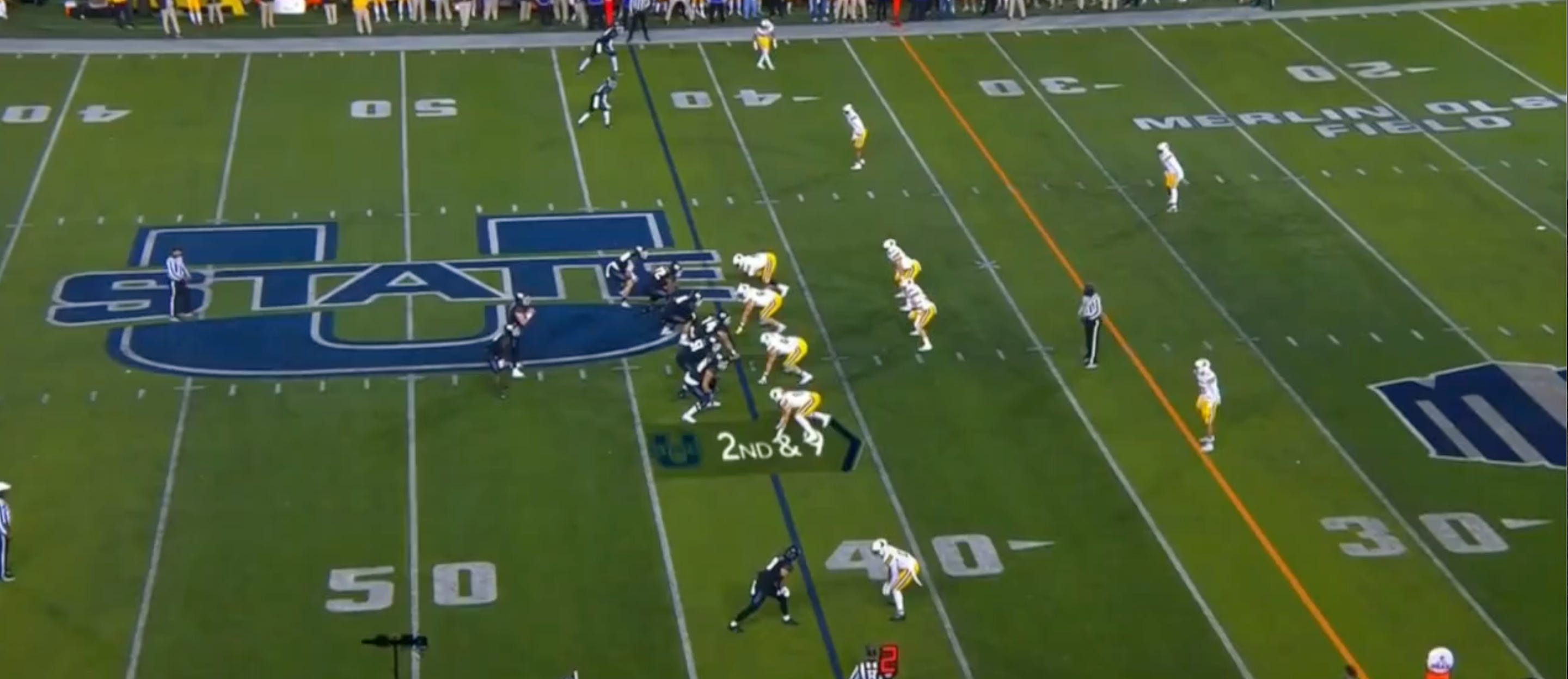 In most cases, running Special is the answer, but we had another issue, the offense expanded the formation to the sideline; think Briles’ splits. Both sets of WRs were placed near the top of the numbers. As a result, there was no way to cap the Mike. In a slight panic, my Mike looked at me. I yelled from the sideline, “Find your three!” Quickly, the player scanned from the sideline to the middle of the formation, finding the TE (#3). He pointed for affirmation, and the ball was snapped.