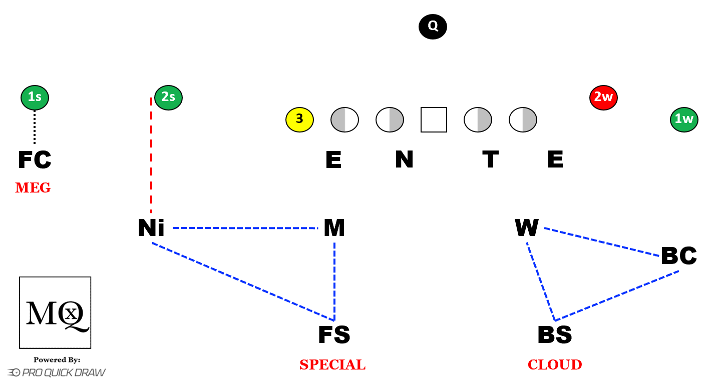 The coverage can also be a great counter to teams pushing the RB out with pop-motion, allowing the Mike to stay on the TE and the secondary to play zone coverage over the push route and the two WRs. Tampa 2 is also becoming popular again, and for defenses that play the coverage at volume, Taser can be a great change-up as the Mike is now locked in coverage. The Taser concept, in reality, is an extension of the Cover 2 family but matches the Mike on #3, locking him in instead of running him through the middle of the field as a pole-runner.