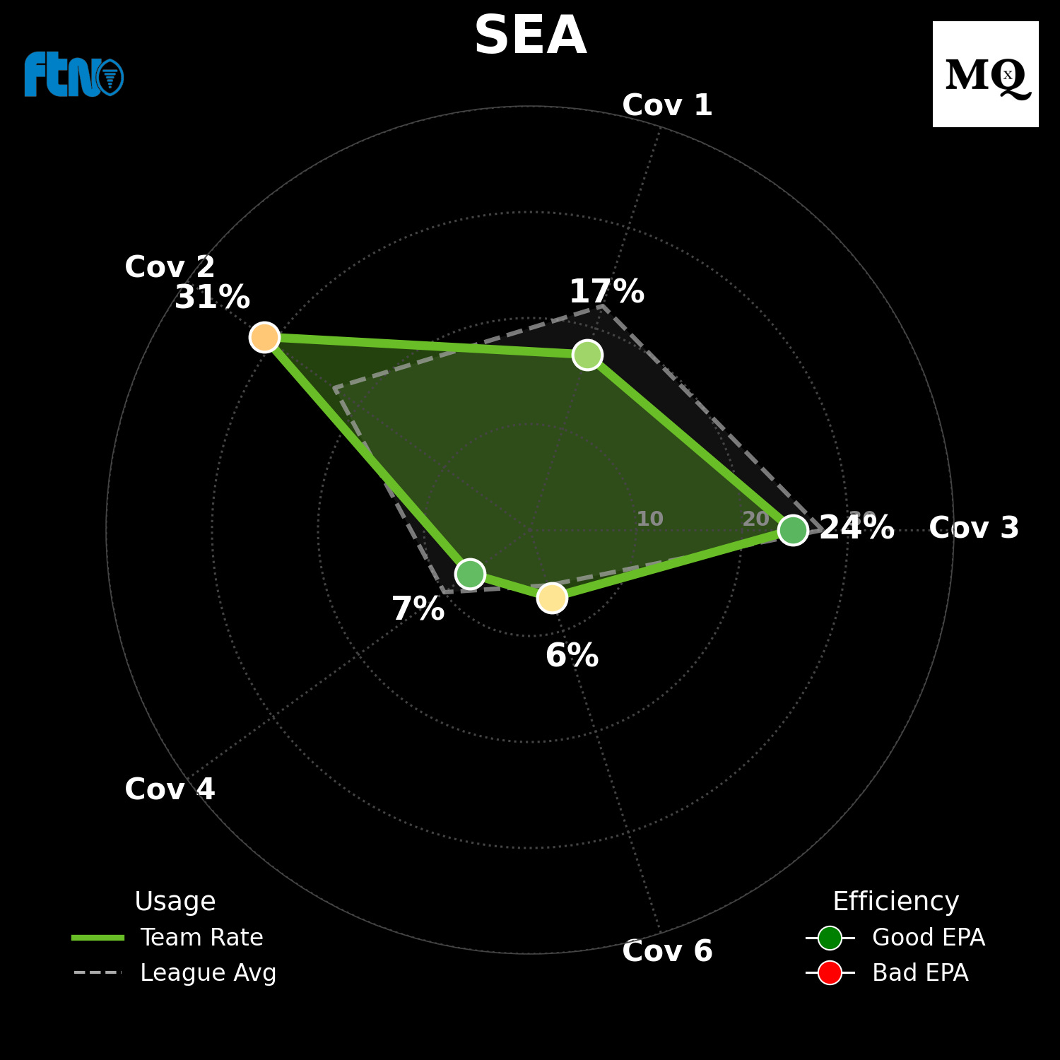 The “secret sauce” to Seattle’s elite defense is the way the coverages sync with the front end. Though the Seahawks don’t blitz at volume, they are third in the NFL in Stunt Rate (~25%). These movements create doubt about the protection and blocking schemes for the offensive line and enhance the front four's ability to get home.