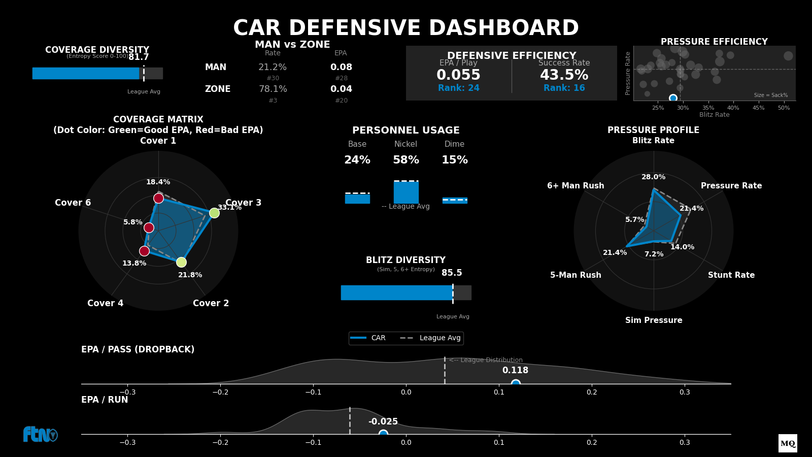 Man Rate: 19.5% (Lowest in NFC) | Zone Rate: 78.1%