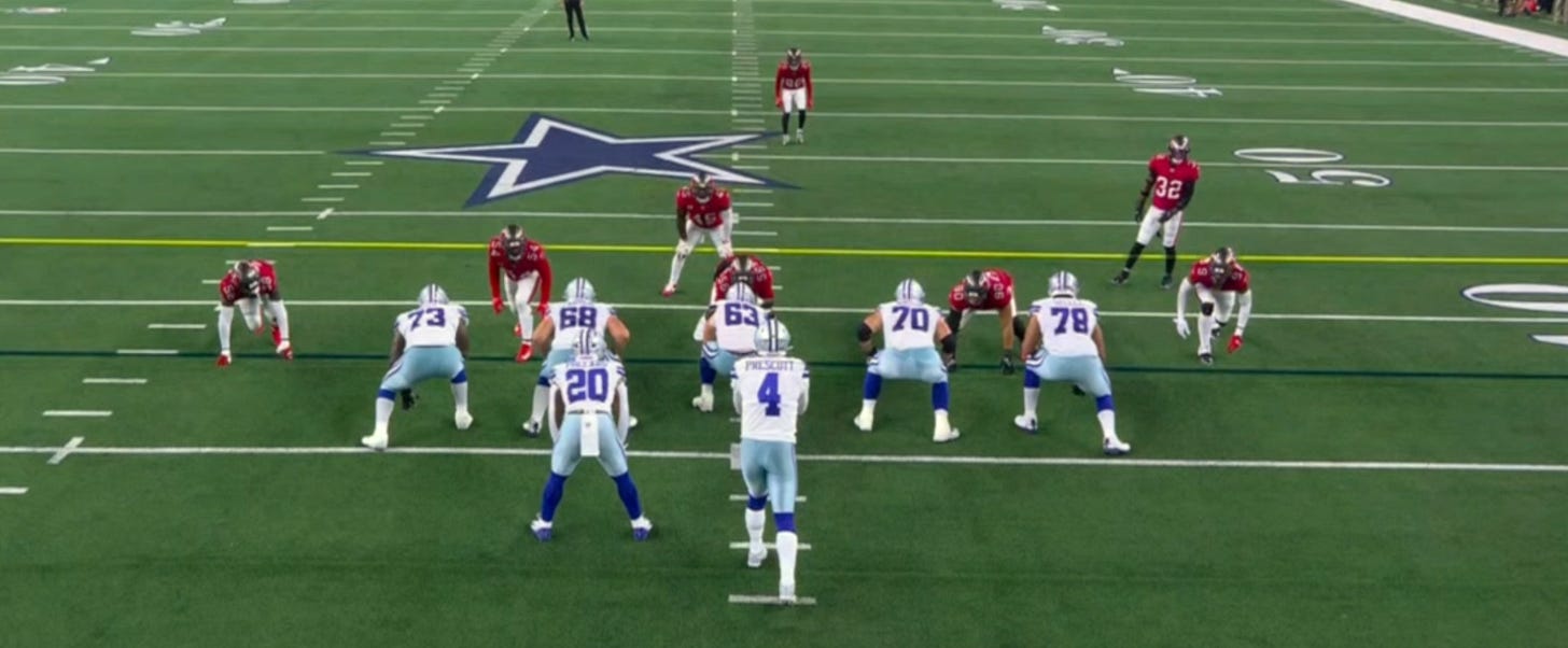 Tampa Bay's Trap 2 Cross-Dog pressure vs. the Cowboys.