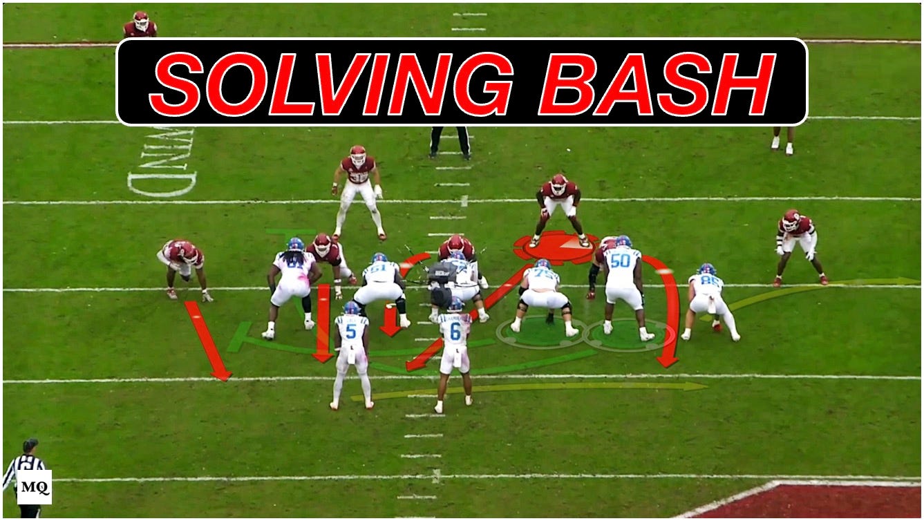 Learn how Oklahoma’s Brent Venables uses the "Theismann" pressure and vertical displacement to neutralize the dual-threat QB Bash concept. This technical breakdown explores specific linebacker blitz paths designed to destroy gap schemes and pin pulling guards in the hole.