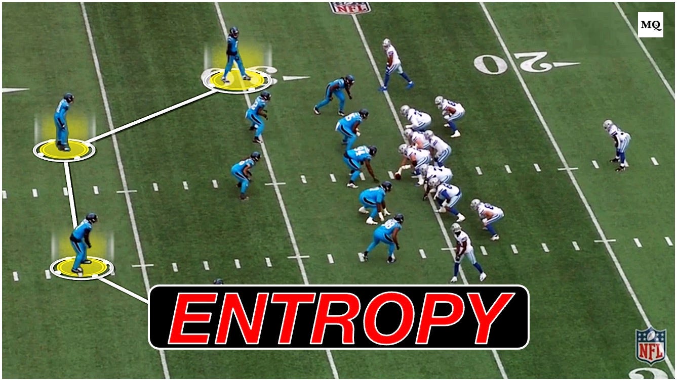 Evero and Cooley have built one of the most difficult pre-snap puzzles in the NFL, ranking second-highest in disguise usage (41.5%), behind only the Eagles. The Panthers' defensive identity is founded on a ~70% “open” shell with a near-perfect split between open- and closed-post coverages. Pre-snap identification is a near statistically impossible task for a QB.
