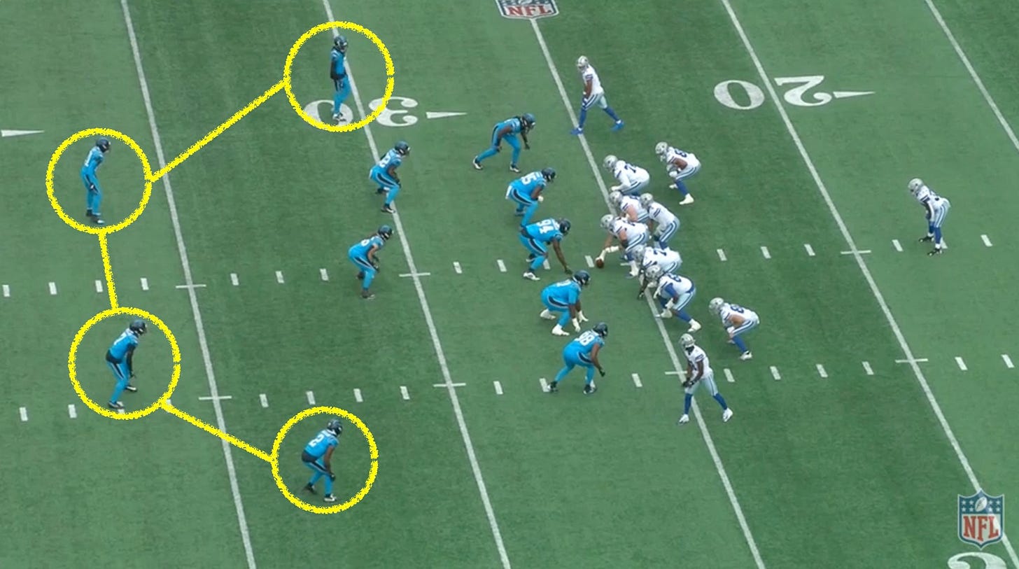 The Panthers want their DBs with their “cleats in the ground” before the snap. Every pre-snap picture should be “frozen.” When OCs look at the film, the goal is to have as few “tells” as possible for them to identify coverage. In a league that is constantly scouring the analytics for an edge, being “static” is a great way to erase cues that quarterbacks can easily identify.