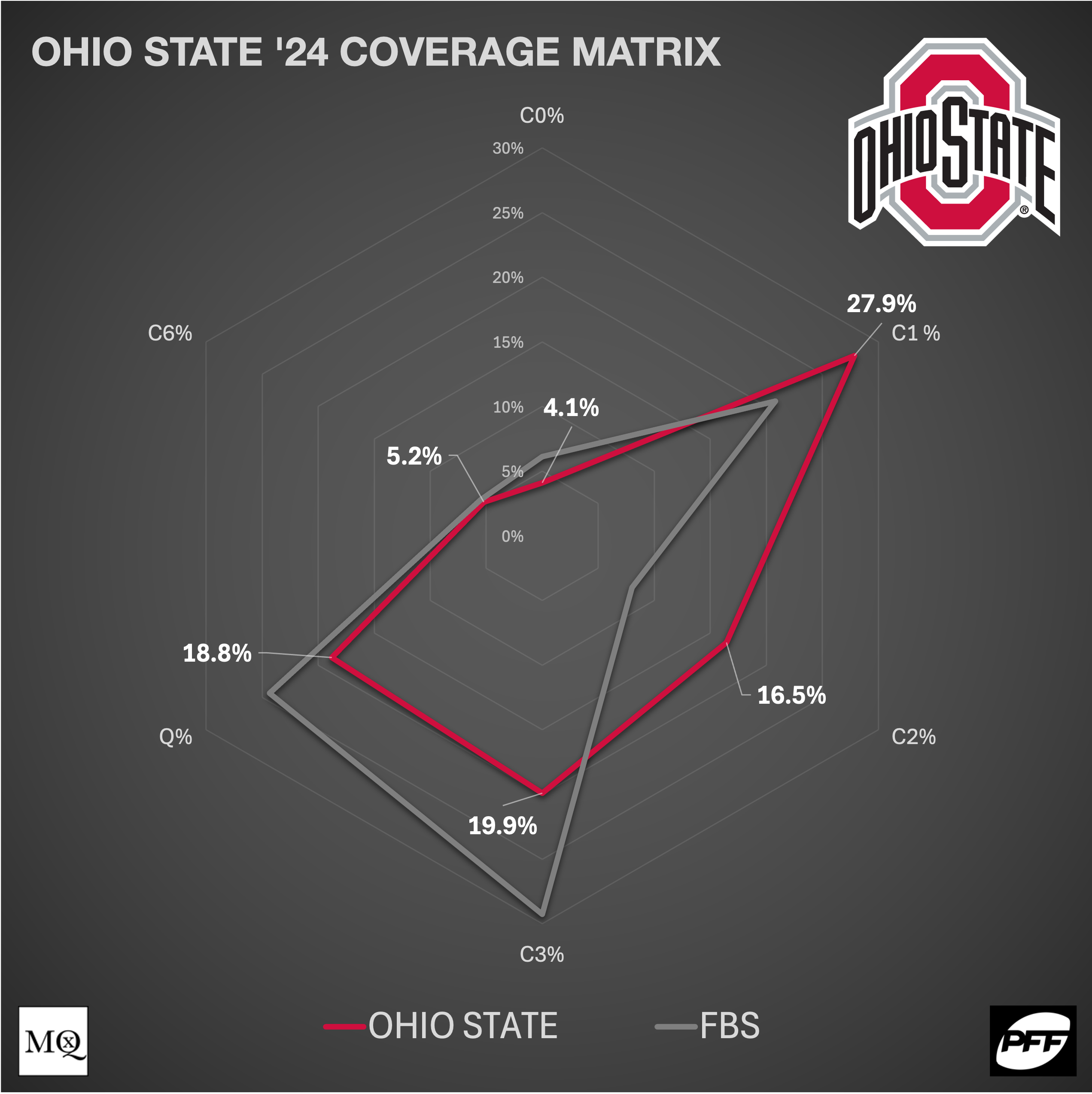 For the most part, Knowles still ran Cover 1 frequently. However, the Buckeyes ranked only 38th in the FBS for man coverage usage overall. Ohio State was 27th in Cover 1 usage, and near the middle in almost everything else. Though the ~28% Cover 1 usage seems high, there are comparable usage percentages for Cover 2 (Tampa), Cover 3, and Quarters. In short, Knowles truly is, and wants to be, multiple.