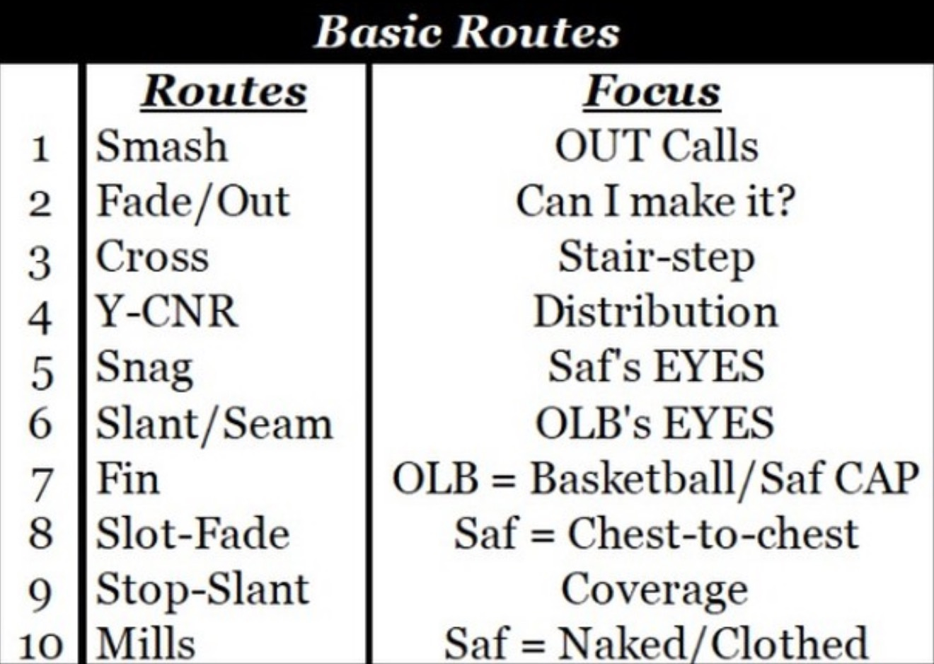 When I created a game plan, I wanted to know what the offense wanted to do, not what kind of eye candy they would throw at us. I would list the main route concepts we would face each week, like the one above. Most times, when I broke down the main two-man route concepts, I couldn’t even get to ten. In that case, we worked on ‘problem’ combinations (everyone is a copycat!).