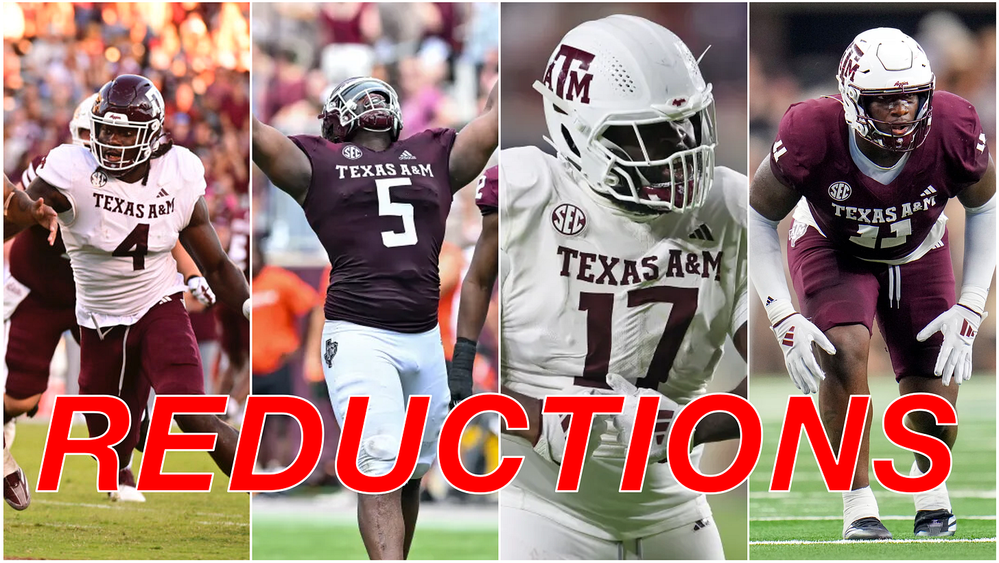 The run defense was constant for much of the year. Some teams, such as Notre Dame, Auburn, Texas, and USC, were able to run the ball consistently, but the front seven wasn’t the issue for the most part. Elko’s ability to change the front structure and use of widespread ‘reductions’ fed into the athletic D-line in College Station.
