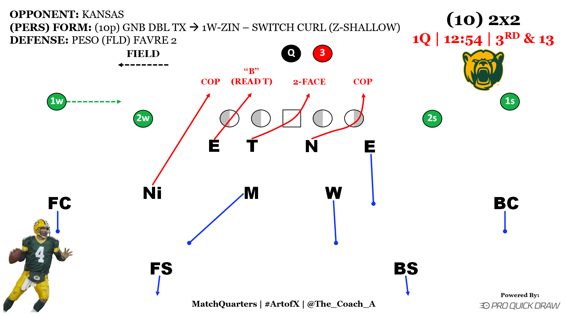 Dave Aranda, Head Coach of the Big 12 Champion (couldn’t resist!) Baylor Bears is probably the most famous at the college level for developing replacement pressures. Though he is known primarily for his extensive use of the Tite Front (a three-down alignment), his PESO, or 4-2-5 Nickel alignment, might have more of an impact in the future. A third CB or Ni replaces the Nose in a 3-4 Base in the Peso package. The alignment is the definition of modern defense, using hybrid players and hybrid schemes. The Peso package uses four-down alignments with three-down concepts and can easily bounce between the two.