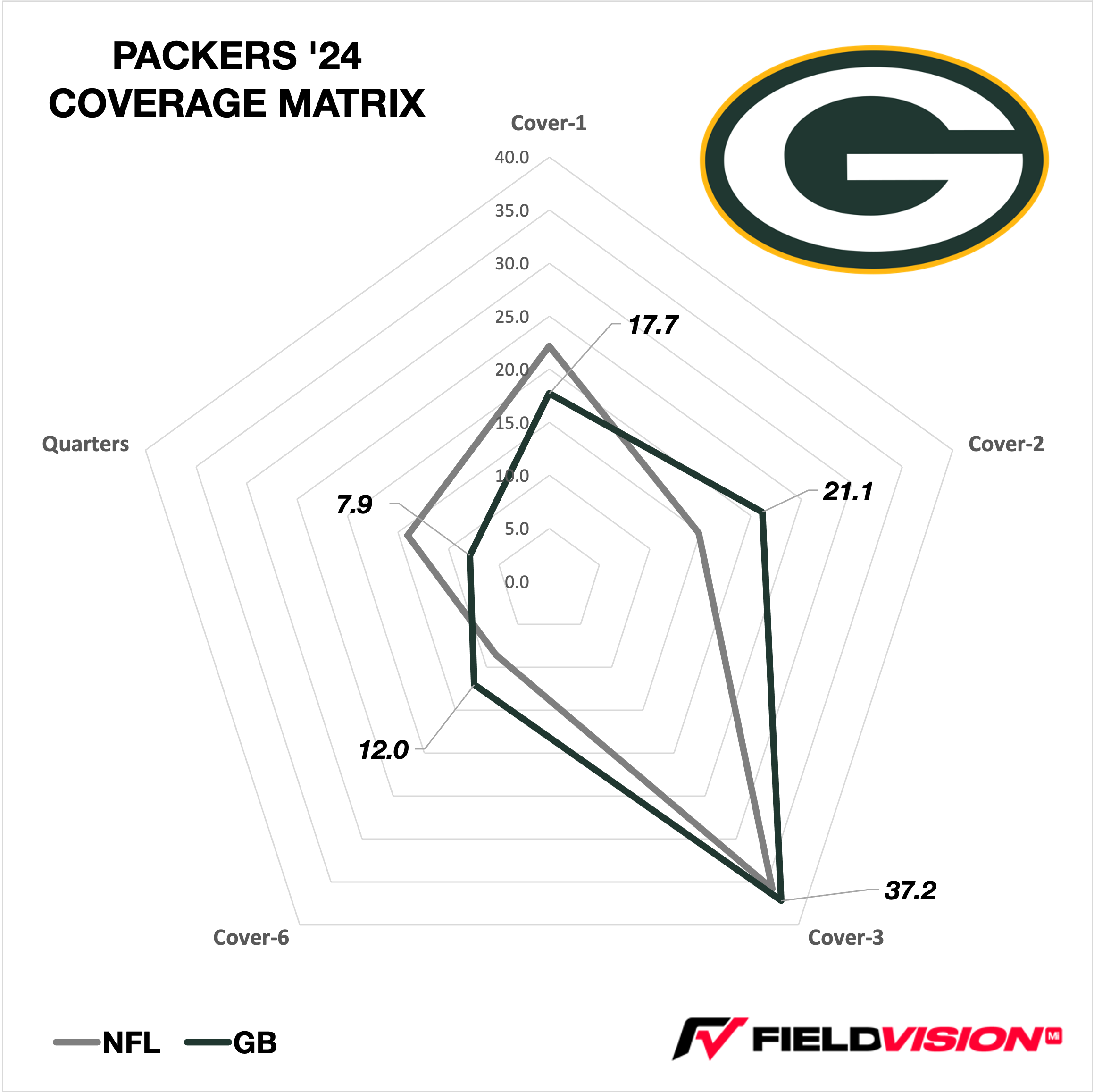 Green Bay combined its Cover 3-based system with Tampa 2, and the Packers ranked fifth in Cover 2 usage last season at 21.1%. Non-traditional Tampas (NTTs), which feature coverage disguise and typically don’t have the Mike in the ‘pole,’ is a perfect complement to a single-high dominant defense.