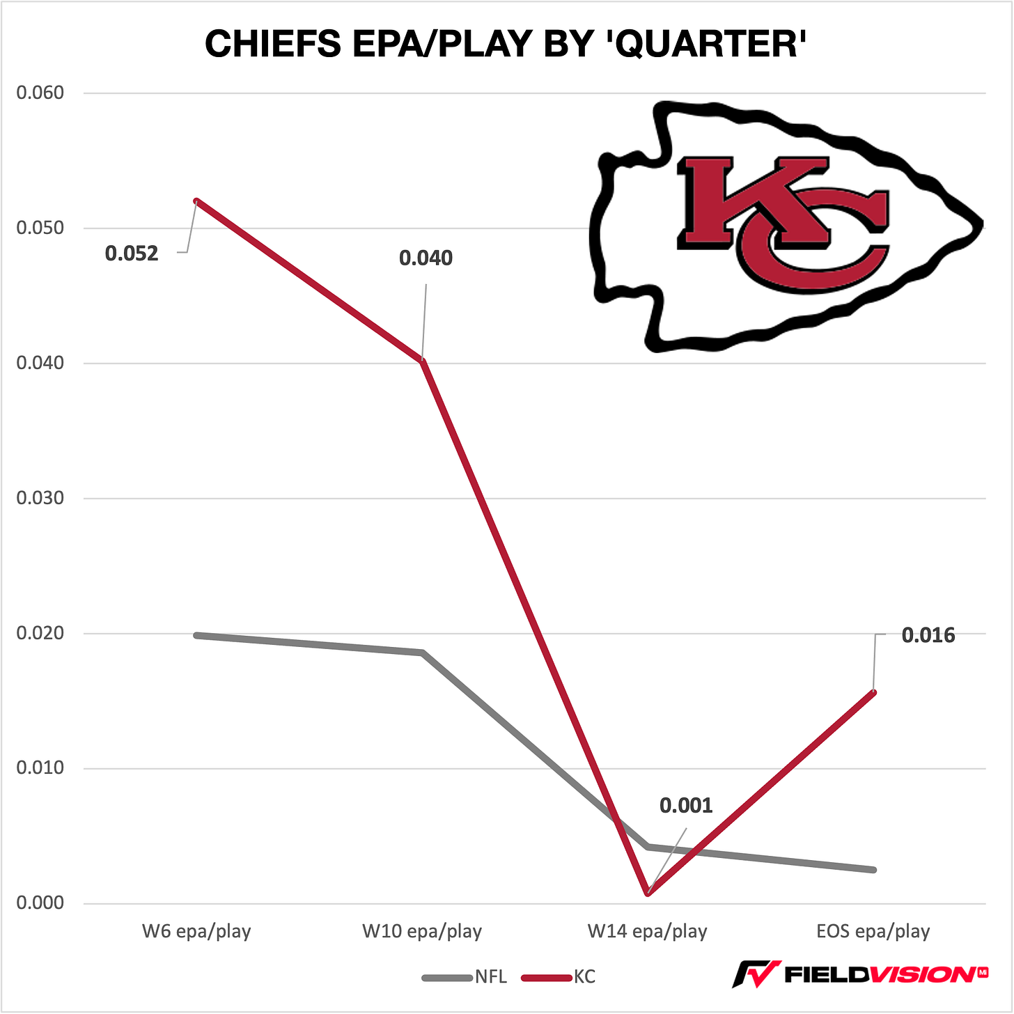Defensively, the defense is the embodiment of a bend-don’t-break system. Kansas City was 13th in EPA/play overall, 17th against dropback passes, and 13th in EPA versus the run. The Chiefs force opponents to drive the ball and penalize them when they turn the ball over against the zone-centric defense.