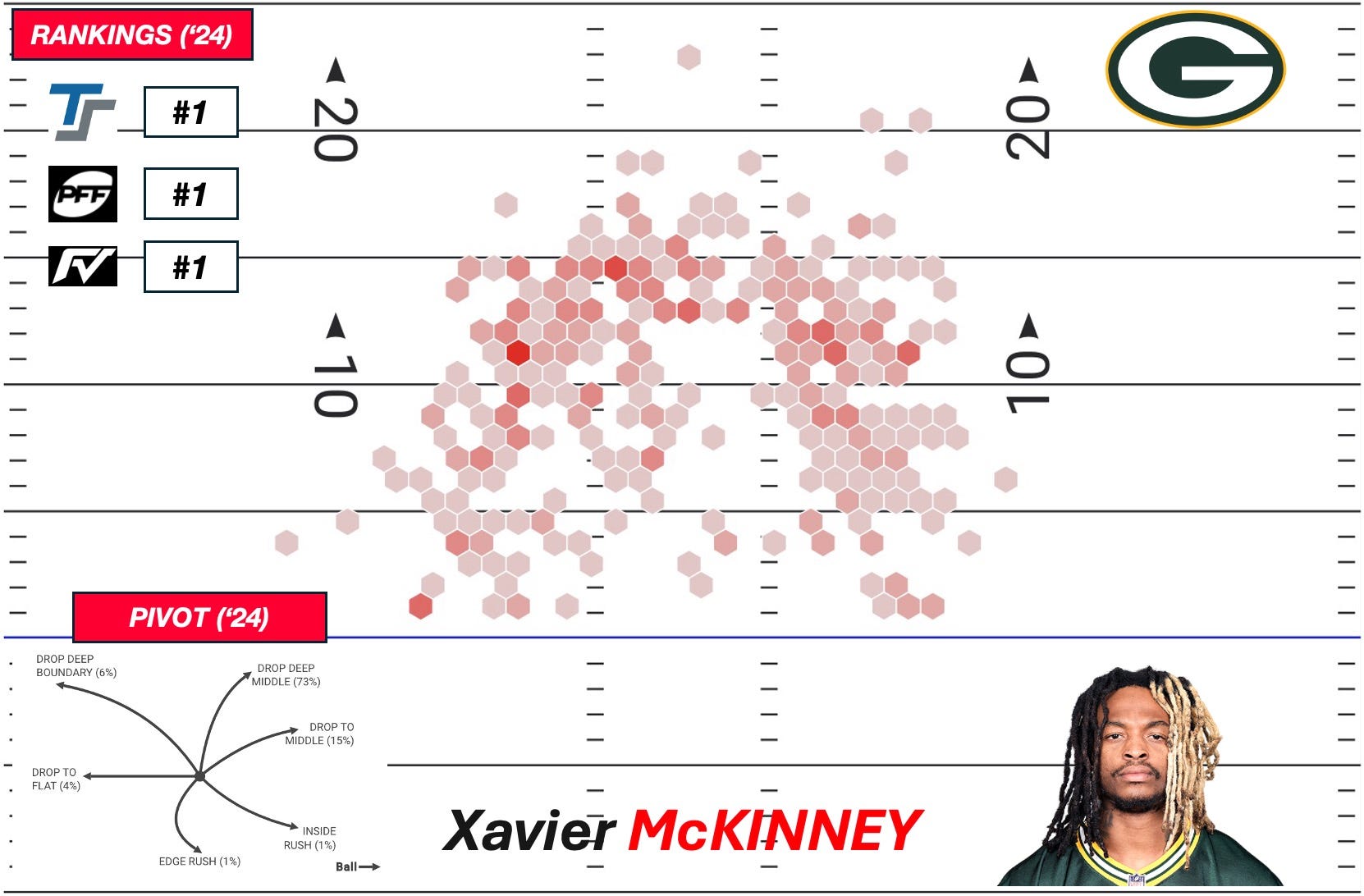 So far this year, McKinney has been a true Free Safety, patrolling the deeper parts of the field. He’s only played in the box on 19% of his snaps and in the Slot only 4% of the time. The emergence of Jovan Bullard as a viable option at Slot (25% of his snaps) and Strong Safety has allowed Hafley to keep McKinney as a deep prowler.