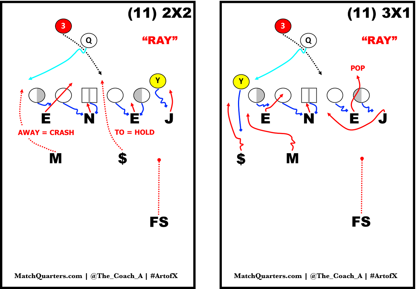 Offenses began taking advantage of the open space behind the sinking Safety. The Glance, or deep Slant (Chad Morris at Clemson), and backside vertical choice routes (Briles) became the primary way off attacking defense. In 2012, I was in Waco for the transition from a 10 personnel heavy attack to introducing a TE into the box. Defenses saw the TE and defaulted to single-high and spinning down into the box. The secondary was left in one-on-one matchups that they often couldn’t handle. Needing answers and fast, the Tite Front became the dominant defensive structure.